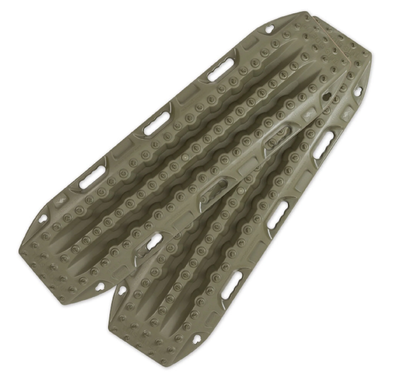 These lightweight and tough Maxtrax recovery devices use integrated teeth that grip into a tire’s/tire's tread to provide traction in sand, mud, or snow.