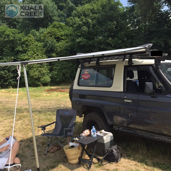 Deze unieke grijze KOALA CREEK luifel is de ideale, snelle 3,00 x 2,50 meter luifel voor montage op een 4x4, bestelwagen, etc. Breedte is 300 cm en de uitval is 250 cm.