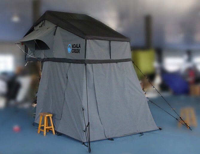 Geniet van extra overdekte ruimte onder de oversteek van je KOALA CREEK daktent. Ideaal om je om te kleden en op te frissen.