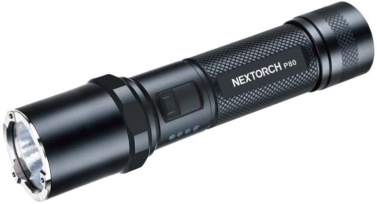 De Nextorch P80 is een robuuste zaklamp met een verbluffende helderheid: 1300 lumen en een verlichtingsbereik van 280 meter. De batterij van de zaklamp is op te laden met de meegeleverde oplaadkabel.